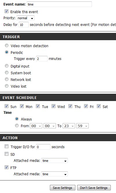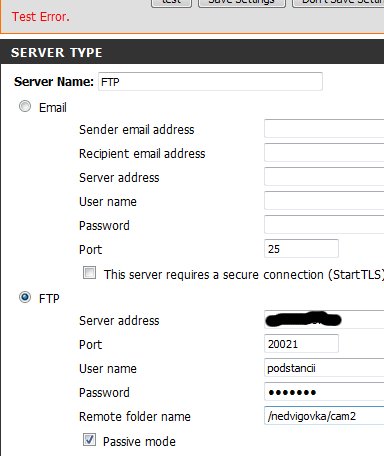 Мне необходимо настроить отправку снимков с DVS-310 на FTP сервер. В Setup->Event Setup->FTP создал запись о FTP сервере (снимок 1). При нажатии кнопки "Test" получаем надпись "Test Error.", но тестовый файл на сервере появляется. (снимок 2) Есть предположение, что по этой же причине на FTP не выкладываются снимки с камеры. (снимок 3)