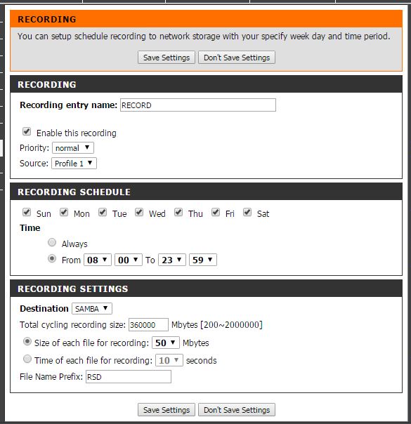 Запись на сервер под управлением Windows Server 2008. Пишется на диск, объемом 450 Гигабайт, из низ свободно 100 гигабайт. На этот же диск пишут камеры DCS-2132L, с ними такой проблемы нет.