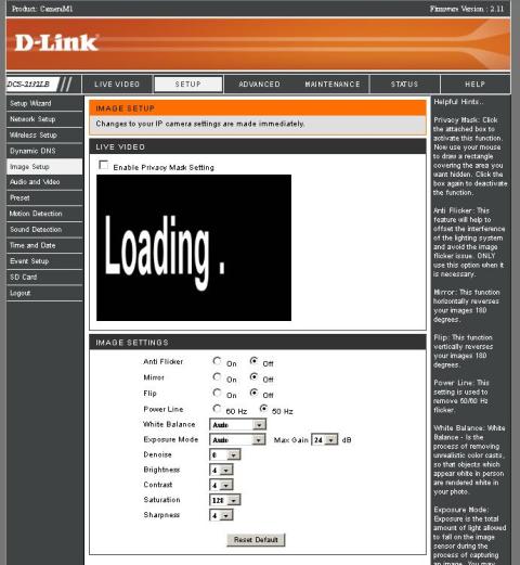 Если на этой закладке нажать кнопку "reset default", картинка появляется, камера начинает показывать и писать изображение на сервер. Но, через некоторое время (произвольное) все повторяется. Снова надо нажимать на кнопку "reset default". Хотя все параметры итак дефолтные.