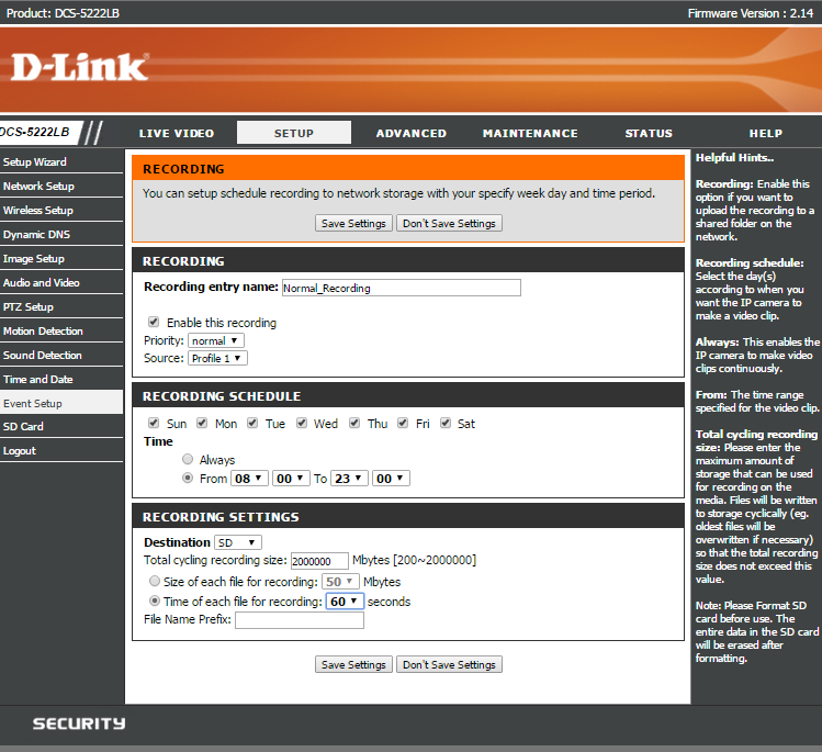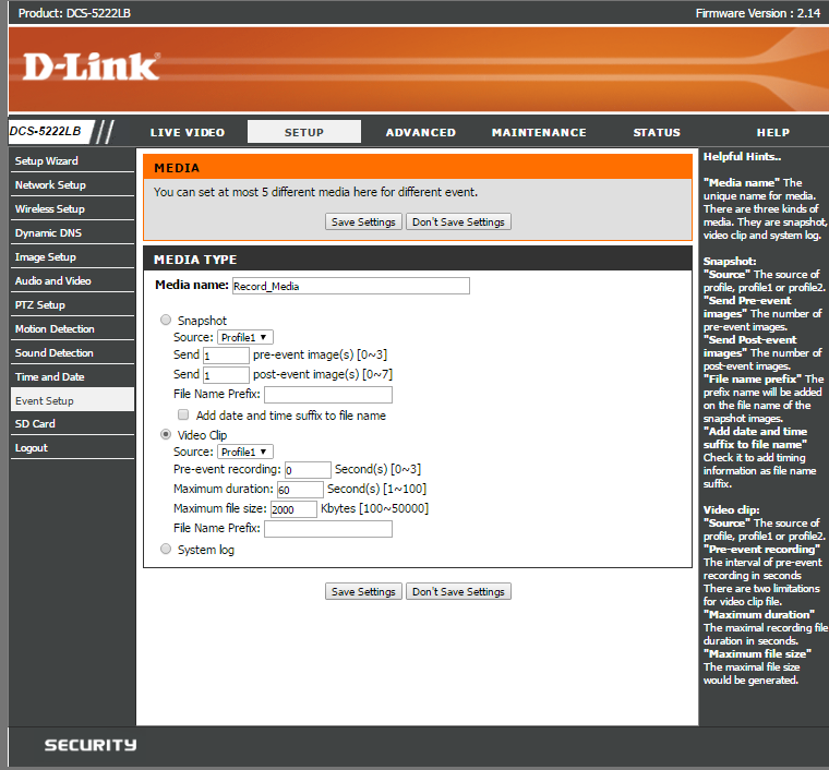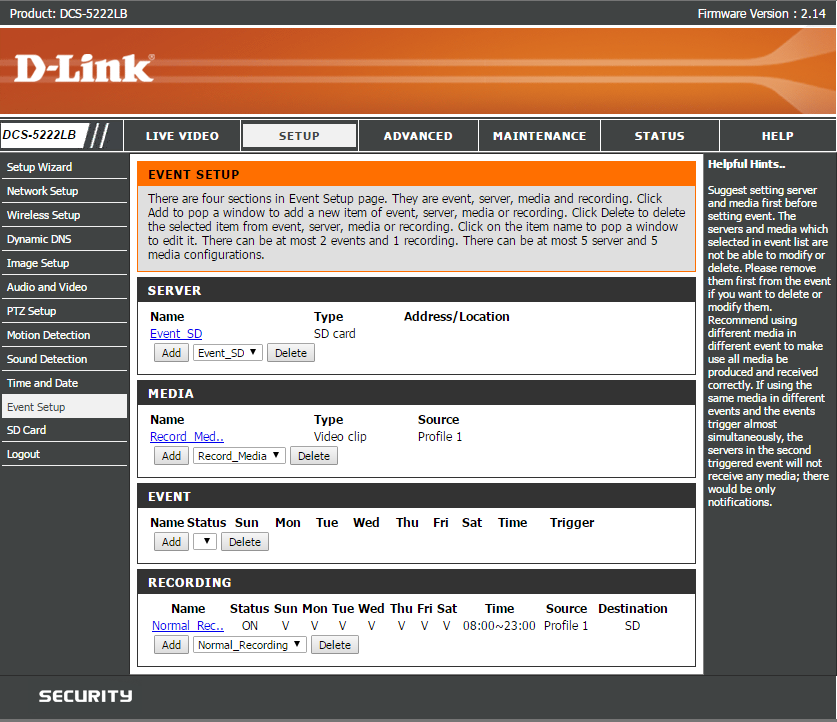 Для того, чтобы порекомендовать оптимальные параметры, пришлите пожалуйста скриншоты настройки камеры со всех разделов Event Setup.