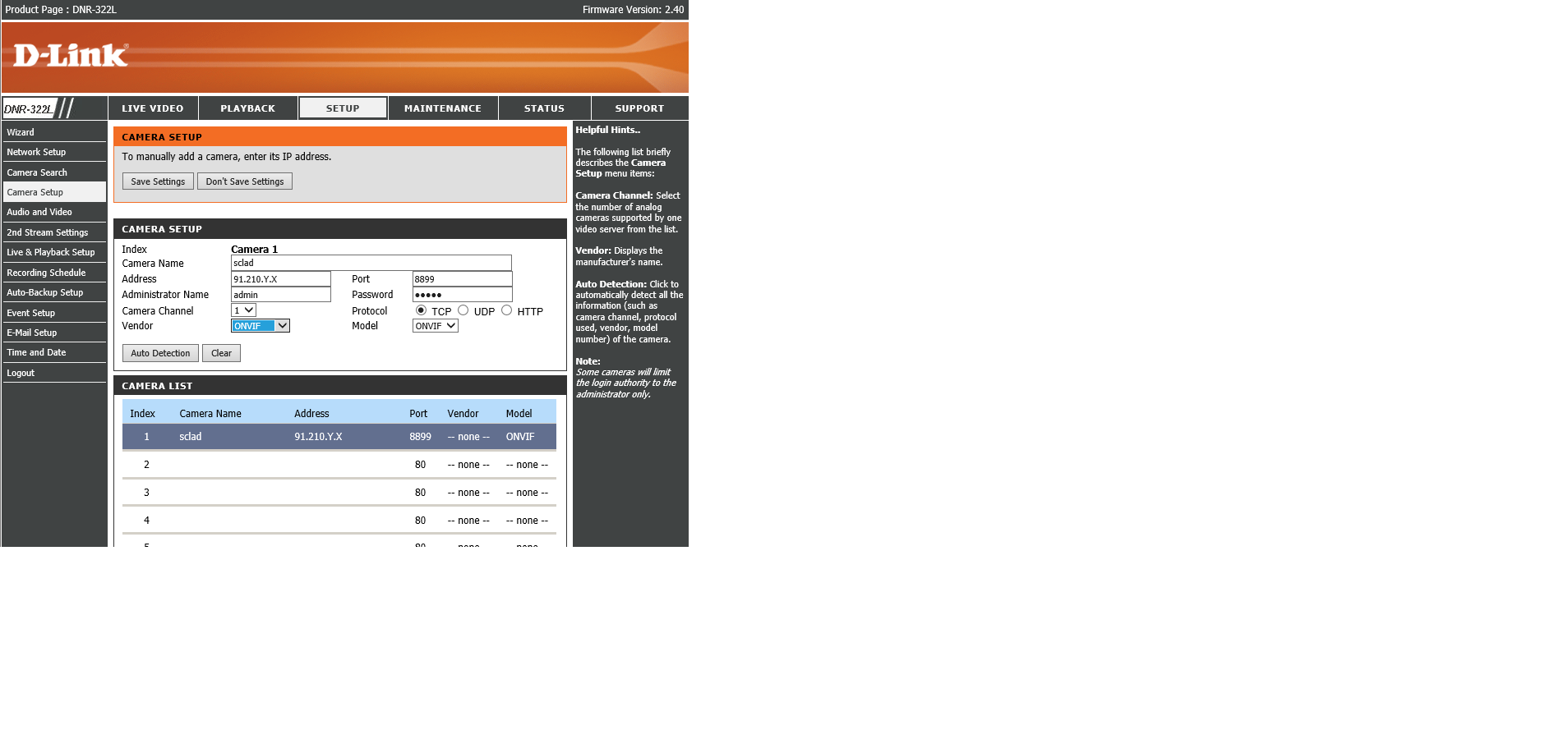 Заголовок сообщения: Проблема соединения DNR-322L по ONVIF