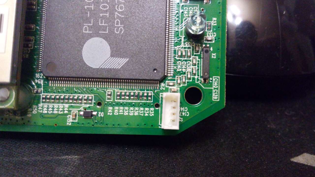 Разобрал , 5 В на плату поступает , БП менял , с его стороны все в порядке , на плате присутсвует разъем четырех контактный (скорее всего uart)