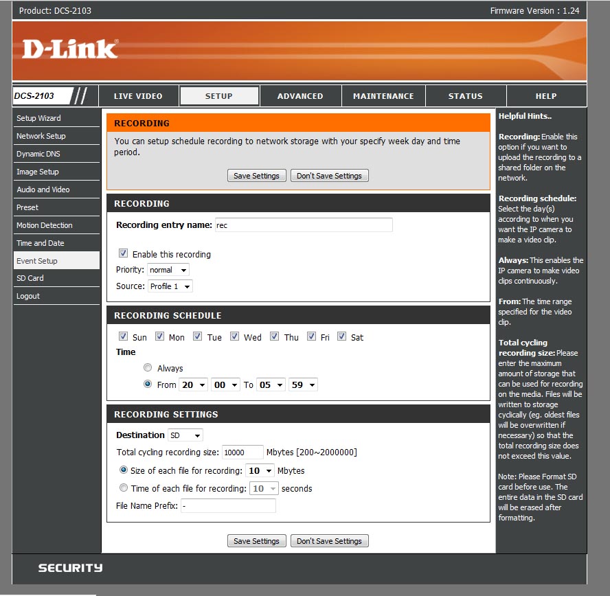 Total cycling recording size – объем выделенного места для записи видео. Этим параметром Вы задаете, сколько камера может занять места в каталоге записи. По достижении заданного объема камера начнет стирать старые записи.