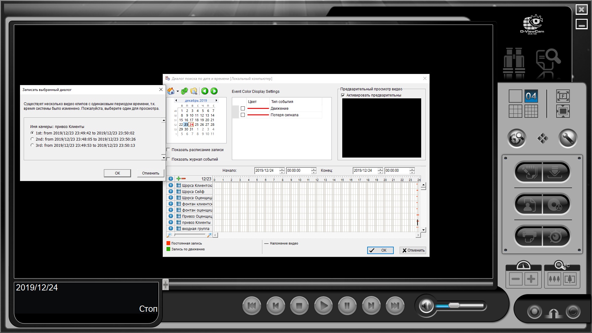И Вопрос номер 2 .. перестало сохранять видео.. скрин прилагаю.. есть дата видео нажимаю и всплывает окно выбора времени.. какое время не выберу всеравно не то видео покажет.. И раньше этого окна не было вообще. +Обратил внимание ,что еще не наступил день, но уже показывает буд-то было движение видно на третьем скриншоте , но видео не откарывается.