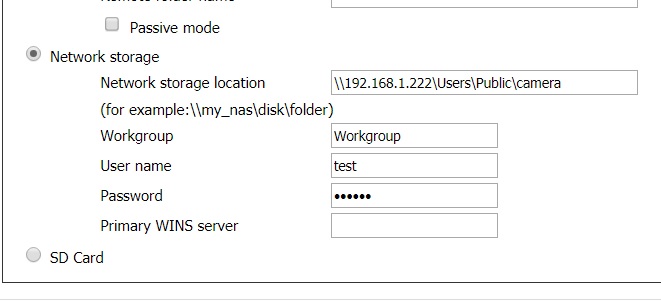 По \\192.168.1.222\Users\Public\camera с другого компа файлы и папки создаются, разрешение для "Все" читать и писать.