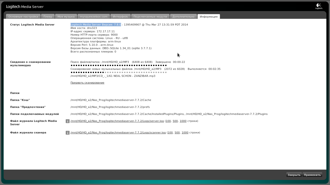LogitechMediaServerУстановка заключается в том, что аддон требует дополнительный модуль в корень жесткого диска