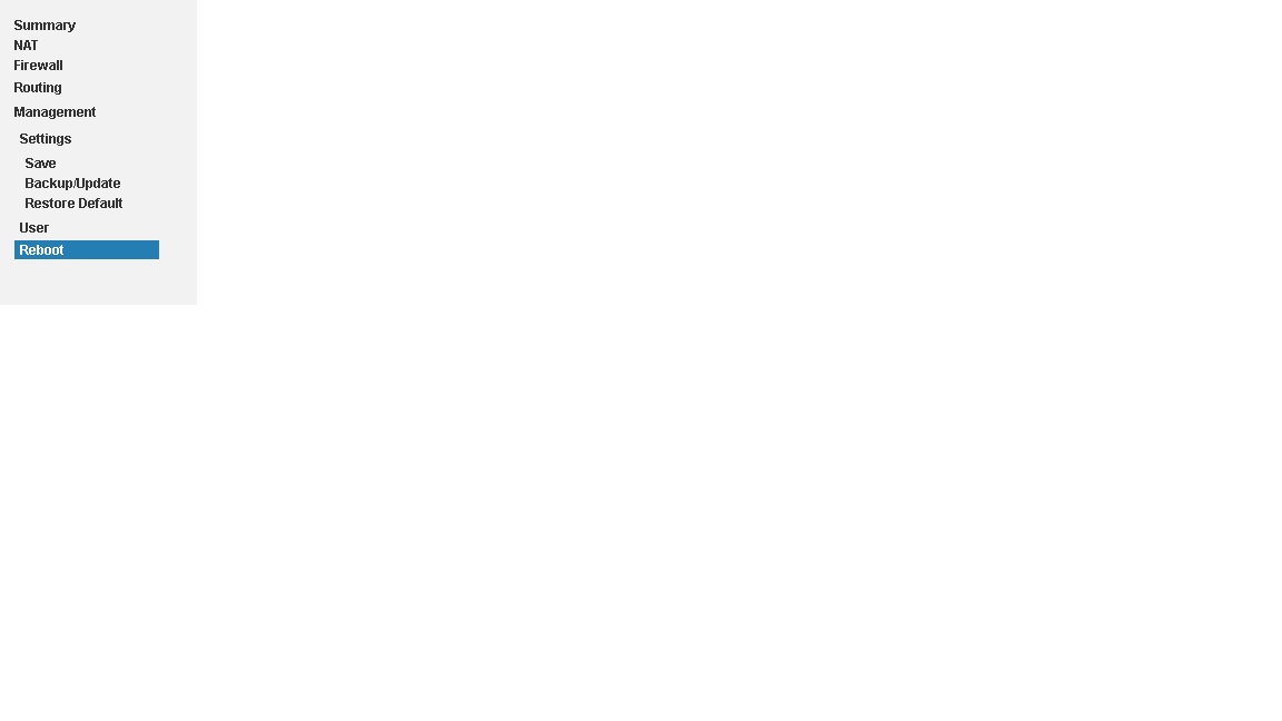 В том то и дело что в Management нет такого раздела.Management в нем раздел settings в котором (Save,backup/update,restore default) далее раздел User в котором (online user information,user/password) и раздел reboot и вообще нету опций для поднятия соединения