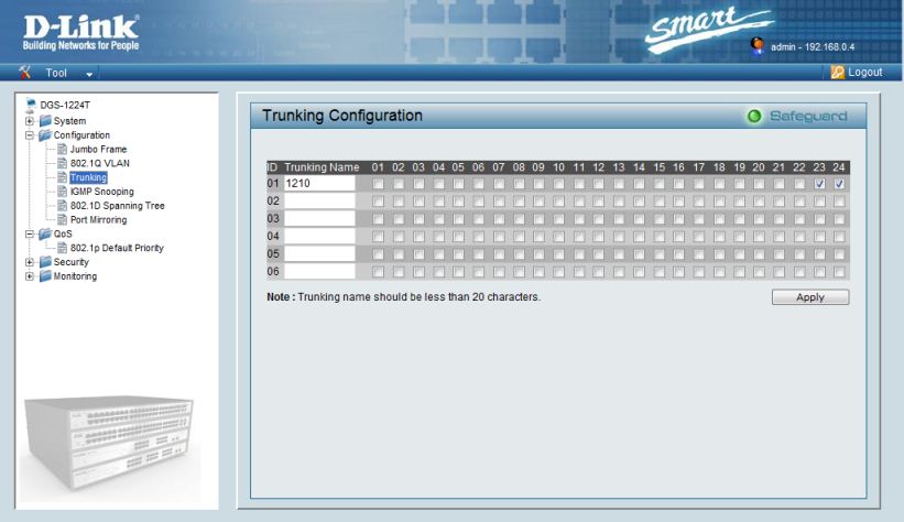 D-Link DGS-1224T Firmware Version 4.10.02 Protocol Version 2.001.003 H/W Ver.:D1