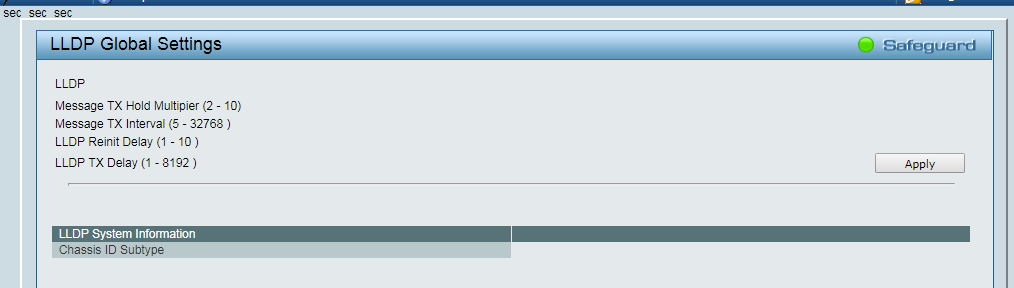 Коммутатор DES-1210-28P версия софта 3.12.015: при открытии вкладки LLDP не отбражаются переключатели для вкл/выкл этой функции и нет полей для ввода значений. В чем может быть проблема? отображение javascript в браузере включено, в мануале не нашла никаких пунктов дополнительных настройки для того, чтобы эти элементы появились.