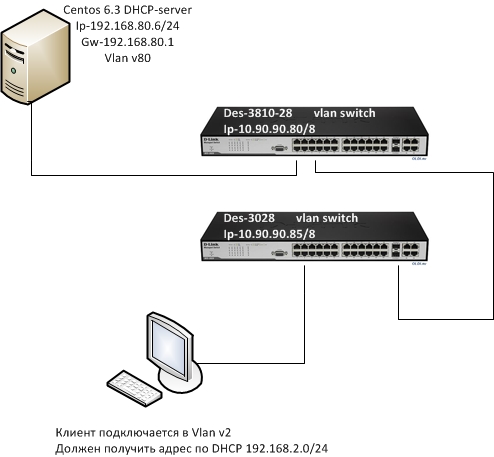 Нужна помощь в настройке DHCP сервера на Linux а именно на Centos 6.3 и коммутаторов D-Link с опцией DHCP Relay Option 82.