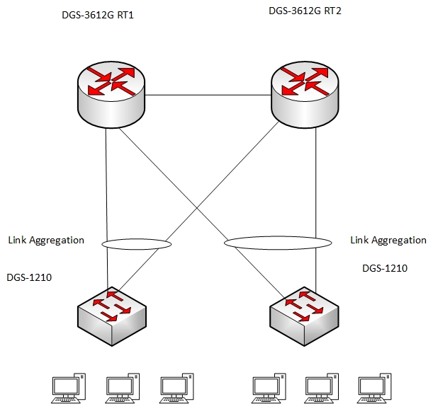 Столкнулся с проблемой перевода коммутаторов в виртуальный стек для резервирования их от падения одного из них (если это возможно). Второй вопрос если я их и введу в стек, будет ли работать агрегирование как указано на рисунке?