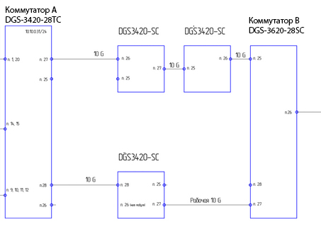 Пытаемся настроить кольцо глядя на http://www.dlink.ru/ru/faq/62/243.html. схема соединения коммутаторов в файле.
