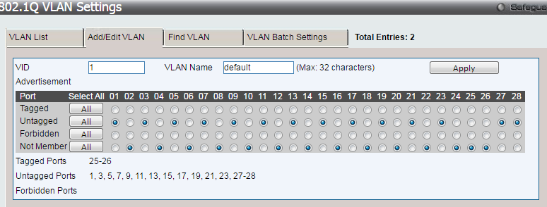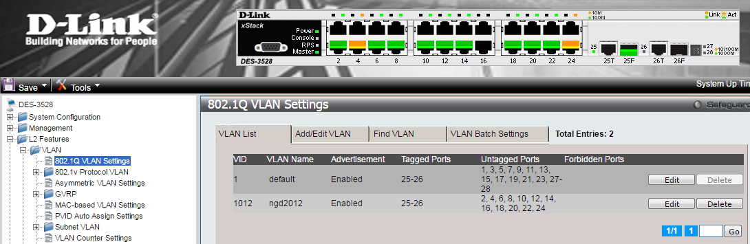 Я решил открыть закрытые порты, на закрытых портах я могу коннектиться только по адресу 10.10.10.*, зашел в веб морду, L2 Features\VLAN\802.1Q VLAN Settings, открываю созданный Vlist, нажимаю на выбранном порту UNTAGGED, записываю изменения, через некоторое время, этот порт перестает пинговаться.