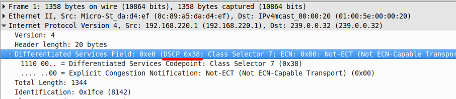 И задача номер два. Как пометить мультикаст траффик меткой DSCP 56 ?