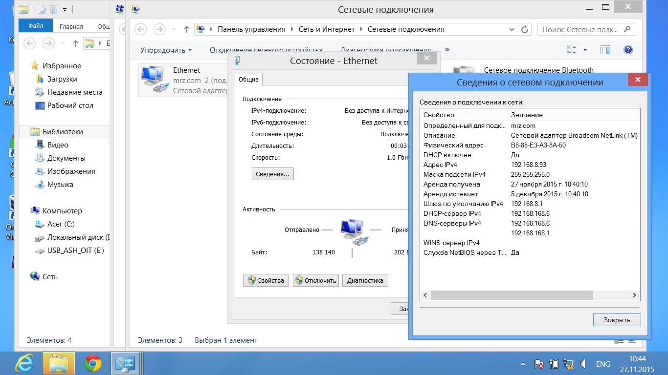 Интерфейс поднят 192.168.8.1