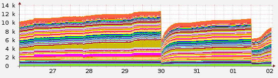 Имеем в стэке 3 dgs-3420. Проблема заключается в том, что не удаляются маки из таблицы fdb, график прилагаю. На графике рисуется кол-во маков в каждом vlan-е, провалы - ручная очистка clear fdb all. При этом: