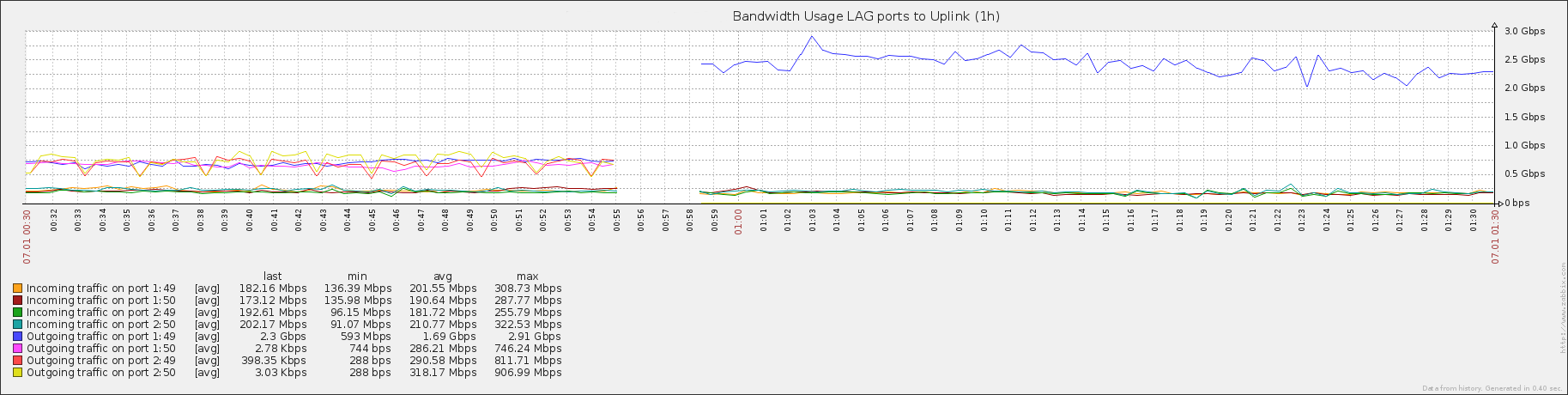 После обновления прошивки с версии 1.70.B022 до 1.80.B005 выявился баг. Слетел алгоритм хеша при выборе порта для отправки в LAG группе. До обновления был выбран алгоритм "L4 Port Source Dest". После обновления в настройках тоже был выбран этот метод хеша, но на практике работал какой то другой. На следующем графике хорошо видно как изменился метод хеширования после обновления и перезагрузки коммутатора:
