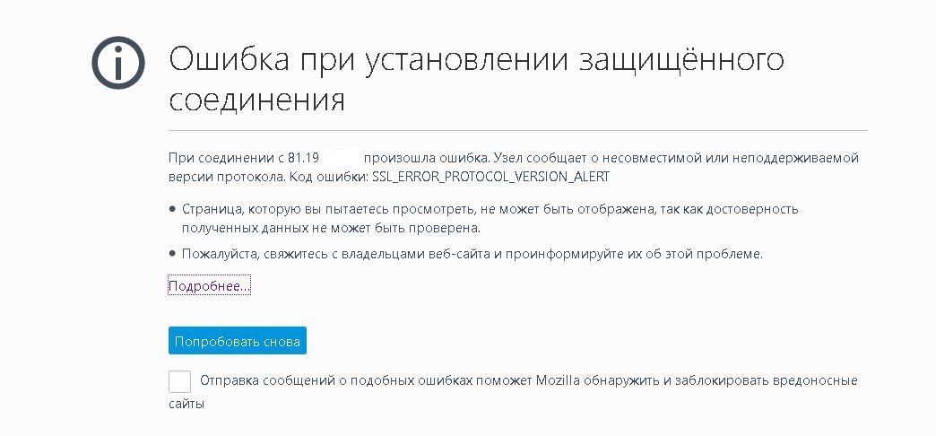 Похоже после обновления браузеров IE и Firefox пробовал и другие при попытке зайти на веб интерфейс свитча DGS-3120-24T Выкидывает ошибку При соединении с 81.198.x.x произошла ошибка. Узел сообщает о несовместимой или неподдерживаемой версии протокола. Код ошибки: SSL_ERROR_PROTOCOL_VERSION_ALERT