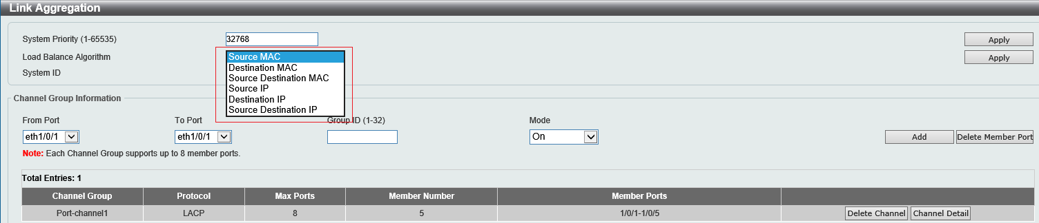 На данный момент на коммутаторе выбран критерий по умолчанию - Source MAC.