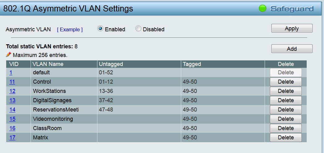 Настройки vlan DGS-1210 в приложении.