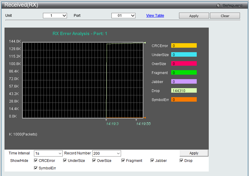 К Cisco 3850 подключены коммутаторы DGS-3120 и DGS-1510. На этих коммутаторах настроены только Vlan-ы. Больше ни каких специфических настроек или создания ACl правил не делалось. Коммутаторы работают и на первый взгляд проблем с ними нет. Но вот случайно я заглянул в Monitoring - Statistics - Port Statistics - Errors - Received(RX) я обнаружил множество ошибок "Drop".