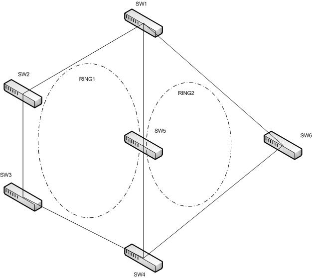 Сейчас необходимо сделать кольцо таким образом, как показано на картинке, то есть + sw6. Умеет ли такое ERPS? По такой схеме инструкций не нашел. Все свичи DGS3420-28SC, кроме sw5 - DGS1210-28X/ME