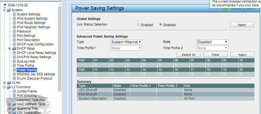 Комментарий к файлу: Центральный коммутатор, у второго так же включены только SaveGuard и Power Saving