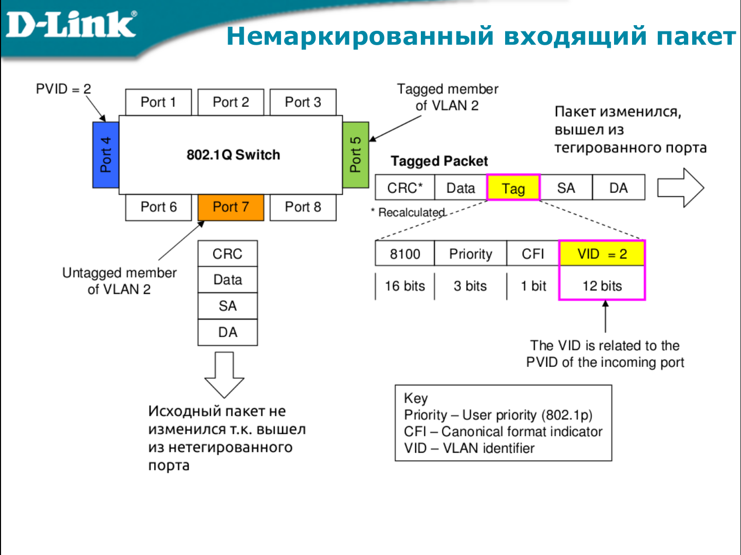 Внутри коммутатора все пакеты тегированные. Если пакет приходит без какого либо тега, то при входе в коммутатор на него навешивается тег того PVID, который настроен на порту.