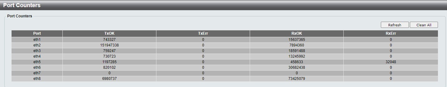 В мониторинге этого замечательного свитча есть таблица с подсчетом пакетов бегающих по портах, с указанием ошибок.
