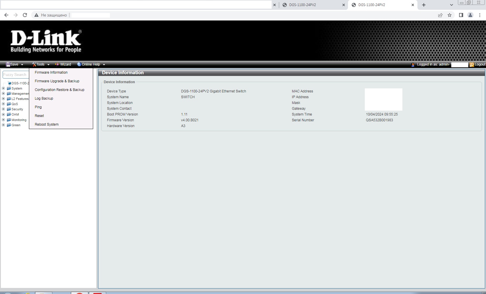 Угораздило приобрести два коммутатора DGS-1100-24PV2 A3. Изначально пришли с прошивкой 3.00.B017.