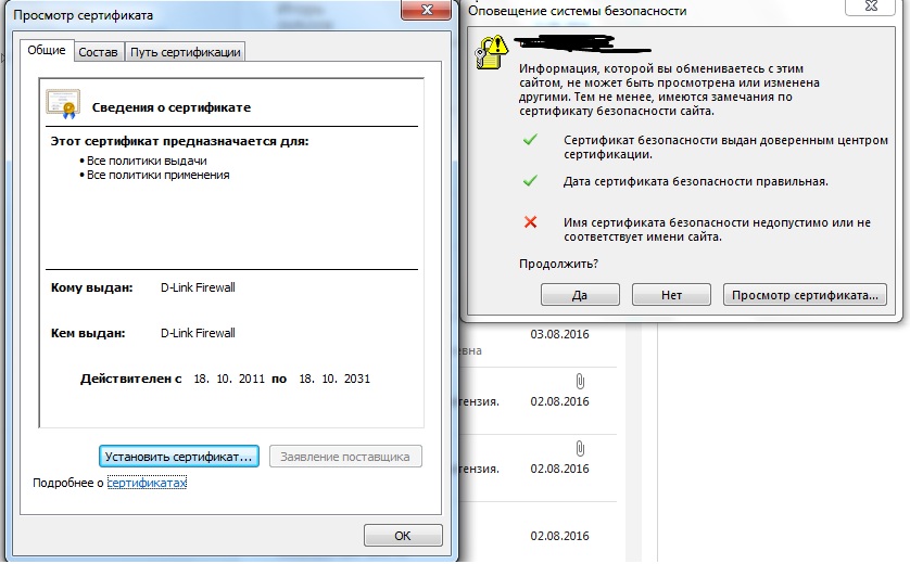 Проблема в том что при подключении вылетает ошибка сертификата DLink
