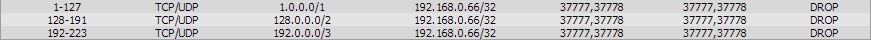 пробую создать DROP-правило, начальный внешний ip 0.0.0.0 конечный 8.8.8.7 - говорит неправильно указаны ip адреса. позволяет указывать в одном правиле только диапазон ограниченный маской 255.255.255.0. Это мне нужно создать 16777216 (256*256*256) правил для того чтобы закрыть доступ?