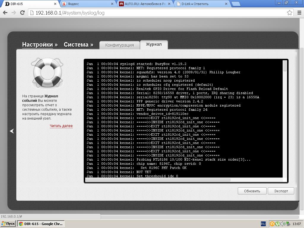 И еще, может я не там смотрю логи? Я не спец, и просто захожу на роутер, выбираю "журнал событий" и там он выдает вот это. Плюс может нужен выбирать не информационные сообщения?