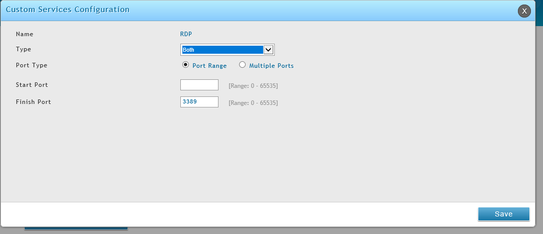 - Поле [url]Port Type[/url] - установить переключатель в значение [url]port range[/url]