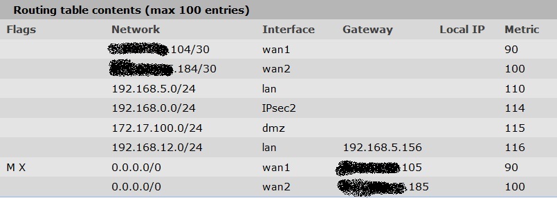Маршрут wan1 отмечен MX - маршрут отключен.
