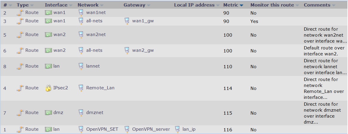 wan1 - 90, wan2 - 100, lan -110, dmz -115.