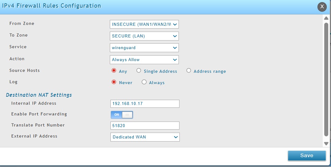 Всем привет. Помогите разобраться в проблеме. На сервере proxmox поднял контейнер через proxmox helper с wirenguard. Задача получить удаленный доступ. проблема в том, что порт 51820 что бы я не делал, не открывается. Я прекреплю скрины с настройкой на роутере. Со стороны сервера всё нормально. Статический ip на котейнере, добавленный по MAC в роутере. Сам wirenguard слушает этот порт. Никаких специфичных настроек сети и файервола нет. Провайдер говорит, что не блокирует никакие порты. Сканировал свою сеть сторонними сервисами, стандартные порты открыты, всё остальное закрыто. Буду благодарен за помощь :)