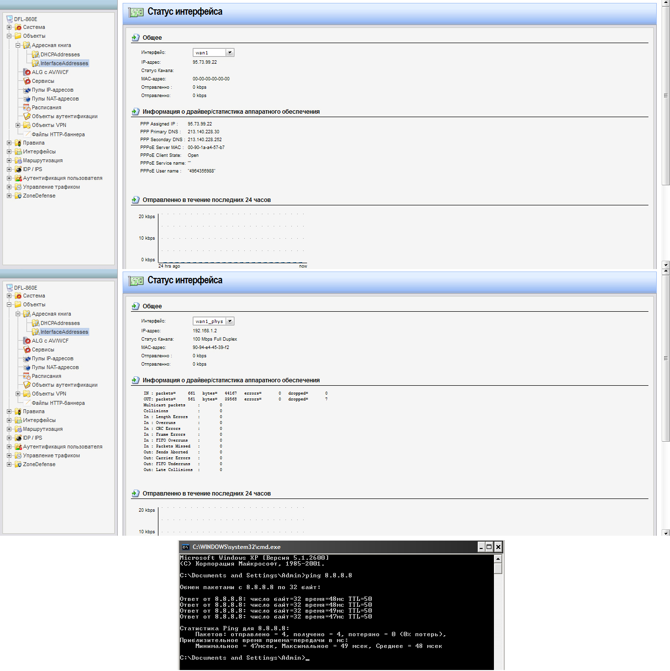 Провайдер Ростелеком (бывший Домолинк), Московская область. До DFL все работало на одном только DSL-2500U/BRU/D (версия железа D2) настроенном в бридж с такими настройками 192.168.1.1 255.255.255.0 DNS 213.140.228.252 213.140.228.218 (конкретно так диктует техподдержка, без каких-либо нюансов). Соответственно с ними на одной машине все хорошо работает. Задача подоткнуть к нему DFL чтобы тот подключился по PPPoE и раздал интернет в свой LAN.