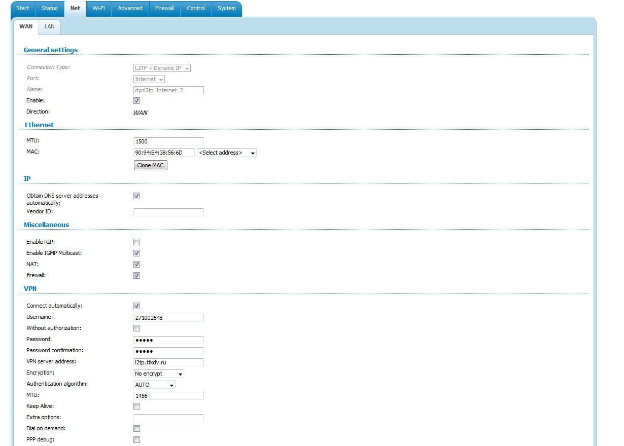 Провайдер - ТТК-ДВ г.Хабаровск. Соединение L2tp + динамический ип