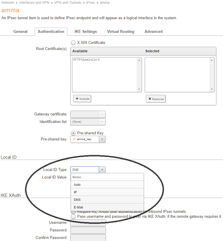 Network» IPsec» VPN and Tunnels» Interfaces and VPN» Amma