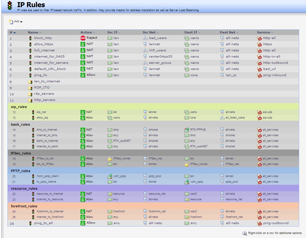 И еще. Позаботьтесть о разрешении везде пинга, будет проще отлаживать. Правила для сервиса ping-outbound. Выше всех.