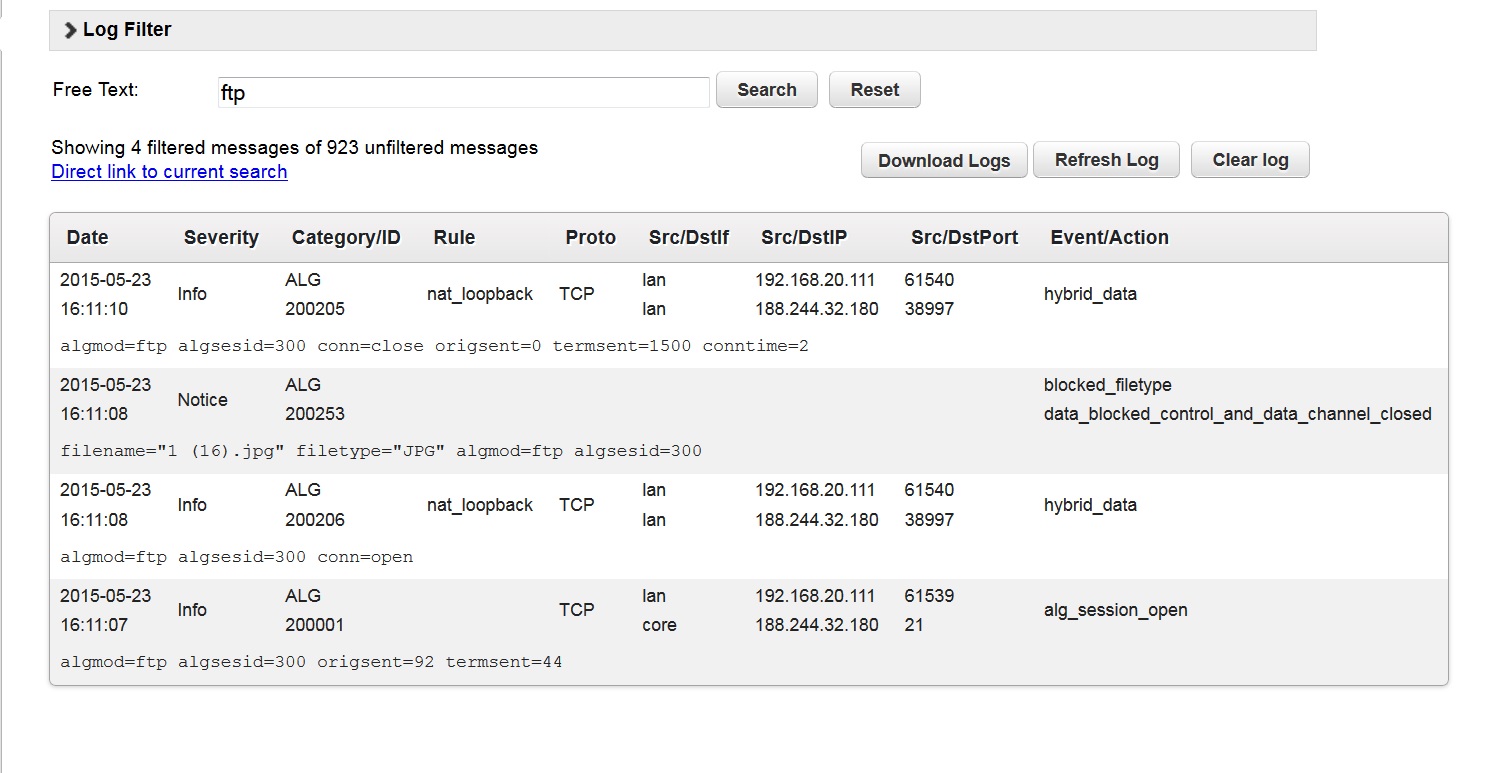 2015-05-23 19:50:25 192.168.20.1 - 192.168.20.130 21 noop - 200 0 0 a4501c71-f9af-4bbf-a7ab-63a427f47b91 -