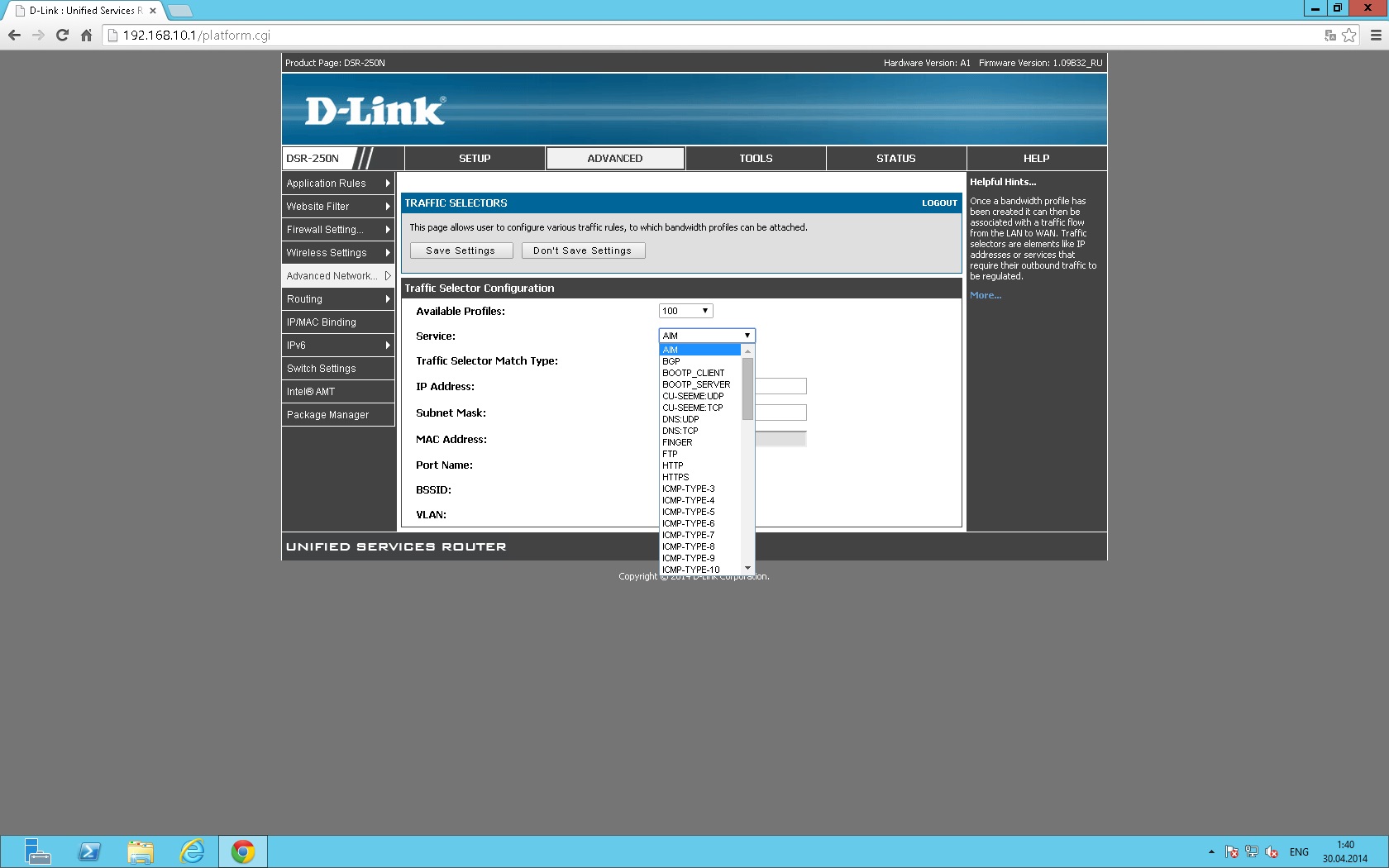3) Advanced-->advanced network-->traffic management-->traffic selectors нет выбора сервиса ANY (хотя в мануале есть) уже какую прошивку подряд. это под каждый айпишник все сервисы да еще на вход и выход прописывать