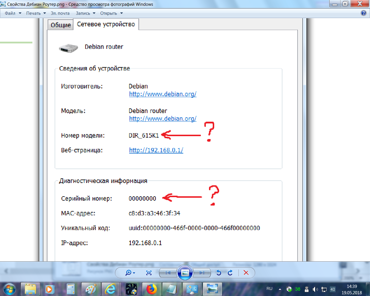 П.С: Забыл сказать, в Управлении сетями Виндовса 7 он видится как DIR-615K1 хотя на корпусе и плате указано, что это DIR-615K2. Серийный номер не показывает (сплошные нули), Мак адрес совпадает с тем что на корпусе и ИД (много нулей но есть и цыфры) показывает, прошлое роутера почти не известно.