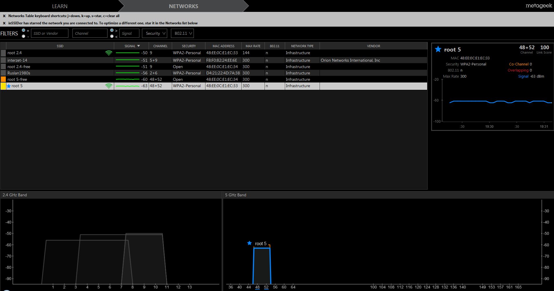 Включил WirelessNetView и inssider -проги показывают