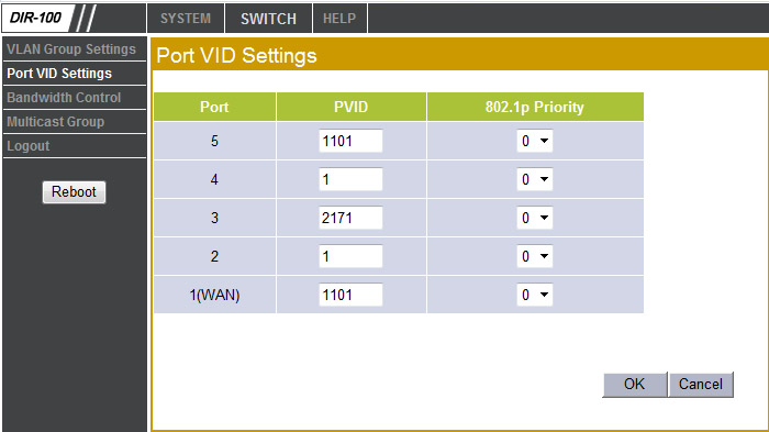 настройки выполнены таким образом, что на второй порт маршрутизатора DIR 100 идет интернет через порт 2171