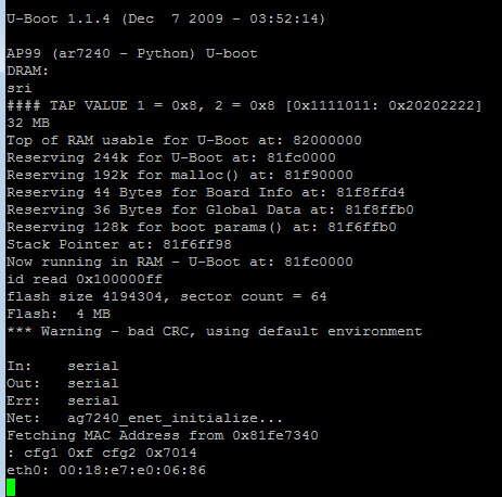 Подключение по tftp не проходит. А uart выдаёт следующее,