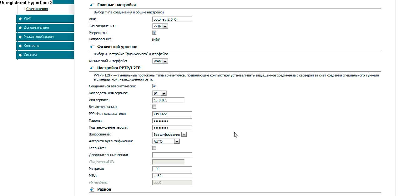 В помощи от КАБИНЕТА сказали что соединение делать нужно под PPtP, имя сервера ip 10.0.0.1