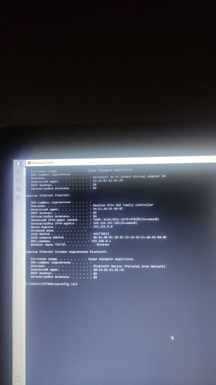 Комментарий к файлу: То, что показывает роутер через ipconfig (ethenet подключение)
