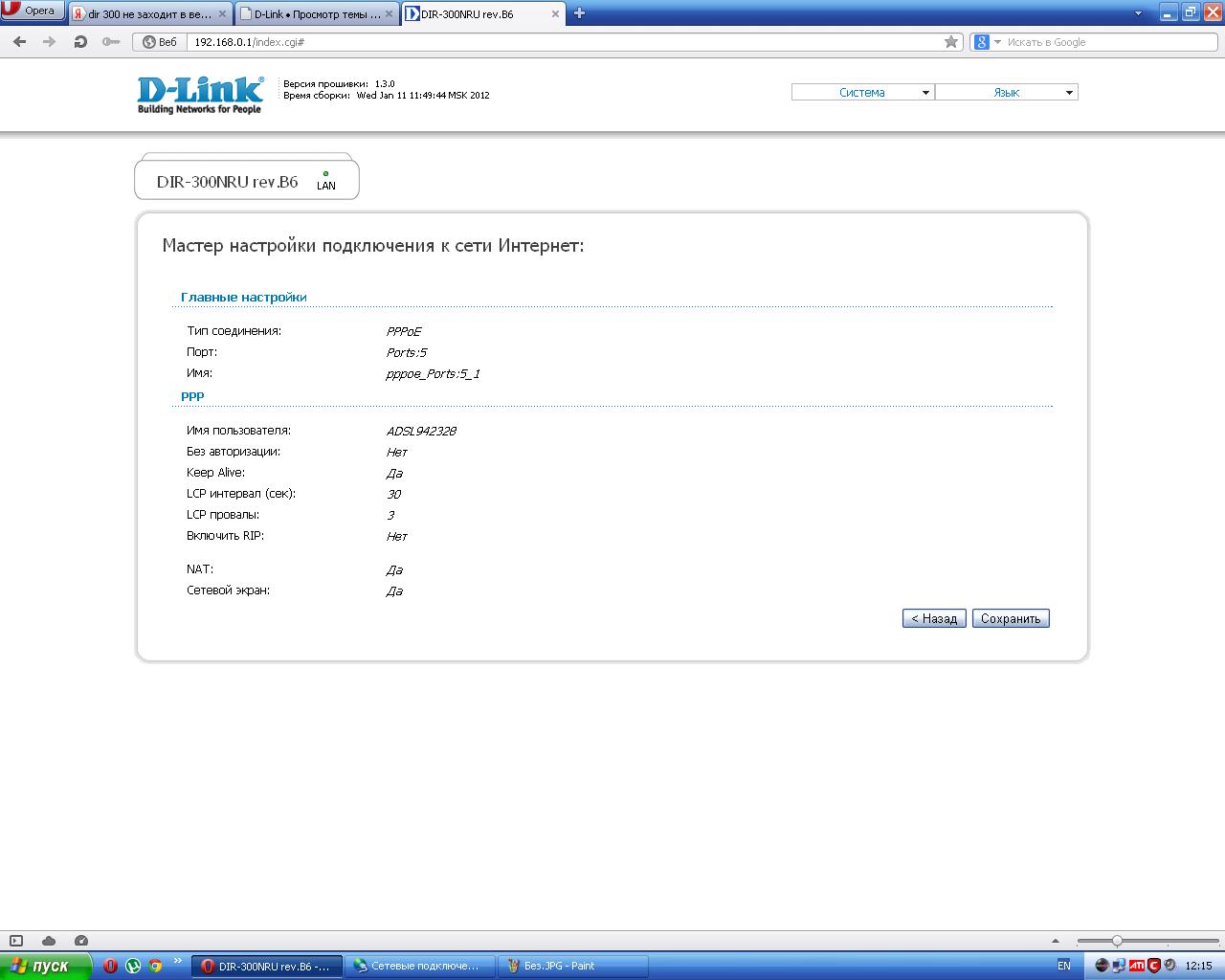 Памогите пожалуйста связать их, я очень много гуглил изучал как их связывать и в итоге не получаеться, описываю как я все делал. Начал с настройки модема dsl 2500u сбросил все прошлые настройки зашел в веб интерфейс 192.162.1.1 и начал настраивать его на режим bridge(режим моста) Интернет у меня Домолинк провайдер Ростелеком г.Ярославь в VPI И VCI написал 0/33 после настройки модема приступил к настройке роутера dir 300, через веб интерфейс 198.162.0.1 и начал настраивать его в режим PPPOE динамичный IP, прописал логин и пароль который выдавался провайдером, после настройки собираю всю конструкцию при этом если подключить модем то интернет не работает, после того как я собрал их интернет работает, но в веб интерфейсе 192.168.1.1 dir 300 навержу там где показывает работает ли соединени PPPOE соединение горит красным,зеленым горит толька LAN соединение, и WIFI не работает т.е работает телефон ловит и заходит в него но в интернет не заходит, помогите пожалута если не сложно объясните где я прокалолся роутер купил чтобы был WIFI дома, модет есть способ чтоб роутер работал ток как WIFI?